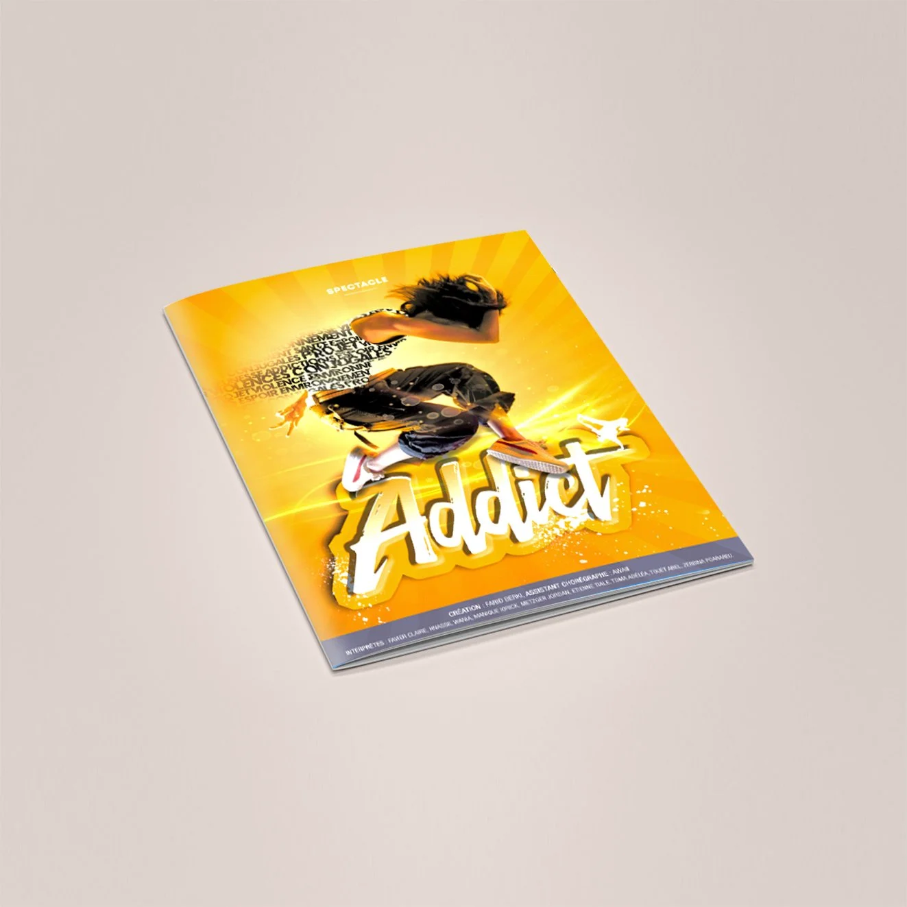 Création de la communication, affiches, flyer, réalisation graphique, maquettes, pour le spectacle Addict.
